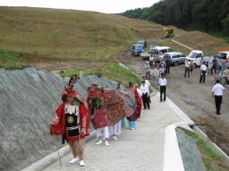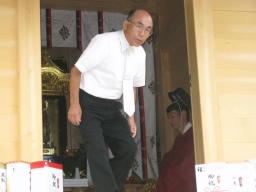 奥宮新社殿前で「一アシ」を舞う平成 |