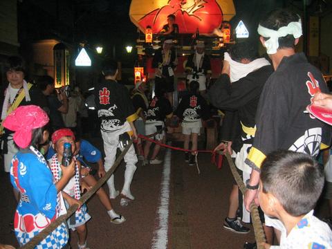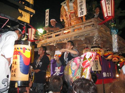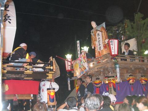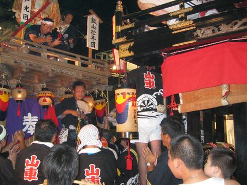山車の激突(飯山と千里浜)---5 エール交換を行う壮年団員 |