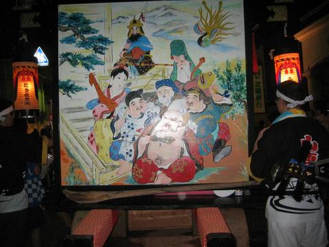 | 千里浜の山車---3 裏側に掲げられた七福人の絵画 |