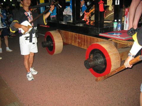 山車の激突(飯山と千里浜) エール交換を行う壮年団員 |