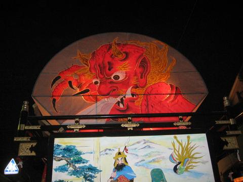 千里浜の山車) 裏側の上部には龍の絵画がのせられている |