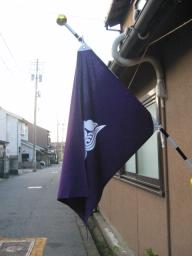 金石町悪魔払いの幟 「悪魔払い」は山伏姿の勇ましいいで |