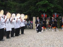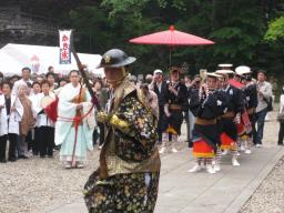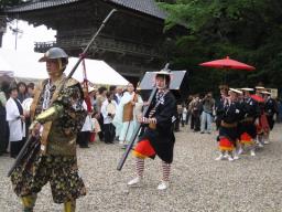 | 前田家から10万石の格式が与えらたと 伝えられる妙成寺で、貫主の入山式に のみ伝統行事として実施されてきた「奴 行列」を再現します。 |