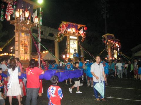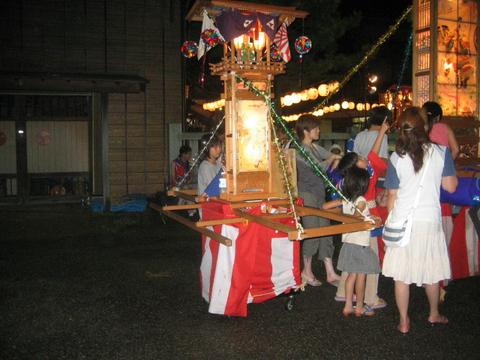 | 印鍮(いんにゃく)神社のお涼み祭り @七尾市府中町の印にゃく神社の夏祭り。 お涼み祭りとも呼ばれ、互いに市が栄えるよう にとの願いがこめられている。大小十数基の キリコや山車が市内中心部で担がれる。 能登キリコ祭りの起源と言われている。 |