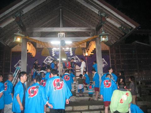 小キリコ---1 | 神社にお祓いを受ける浜通りの若衆 |
