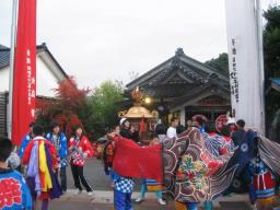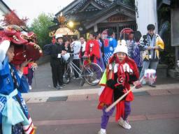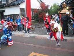 | 中能登町ではシーズン最後になるだ ろうと思われる秋祭りです。この地域 は上出区と下出区とに分かれていて 2つの子供獅子と1つの青年団獅子 が出ていた。。。。 |