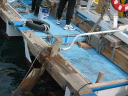 イカツリ船にひかれ湾内を周回する |