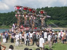 8月17日夜に恵比寿堂に5基のキリコが 集結して乱舞。夜をあかして18日の朝9 時頃、5基のキリコが、立戸の浜で、笛や 太鼓、鉦を打ち鳴らして海中乱舞する。 沖波大漁祭りでは朝から昼にかけて行 われる。大漁と海上の安全を祈願するた めに行われている。沖では5基のキリコ が集結して笛や太鼓、鉦を打ち鳴らして 海中乱舞し横列一線に並べる妙技を披 露した。 |