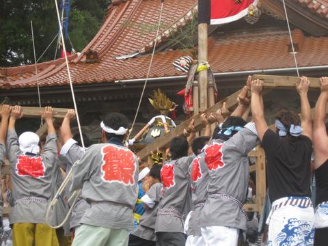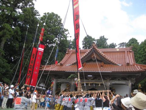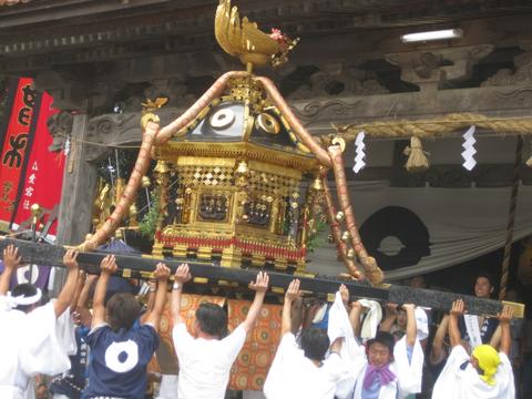 | お熊甲祭 08 拝殿前に神輿の差上げをおこなう |