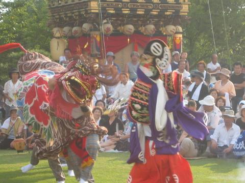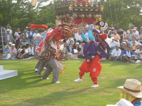 春木獅子舞 NO.3 曳山をバックに勇壮な獅子舞を披露した。 |