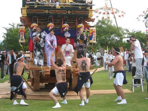 能登部上区の曳山 NO.1 2)二宮、良川新町区の曳山と並んで「拳打ち」 が行われた。ファションショーでは、同町商工 会鹿西支部に所蔵されている約二十万のデ ザインサンプルを使ったインドやタイなどの民 族衣装や浴衣、ドレスなどが披露された |