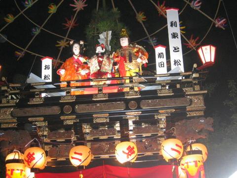 良川新町の曳山 NO.3 ライトアップされた良川新町の曳山飾り人形 は千本桜での「静御前と義経」 |