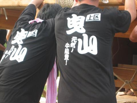 | 能登部上区曳山の引き出し NO.5 お揃いのTシャツで「中能登 元気」の字幕 入り |
