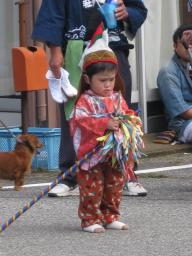 行列一行 猿田彦、太鼓、鉦、キリコ、神輿と続く |