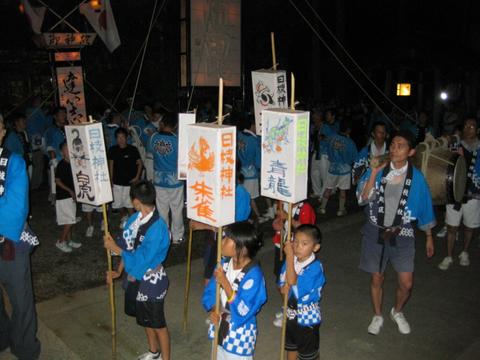 | 新宮納涼祭---1 七尾市中島町藤瀬に鎮座する藤津比古 神社の納涼祭で静かな農村の勇壮な夏の 8月14日の夕刻から夜半にかけてとりおこ なわれ「おあかし」と呼ばれる・・・ |