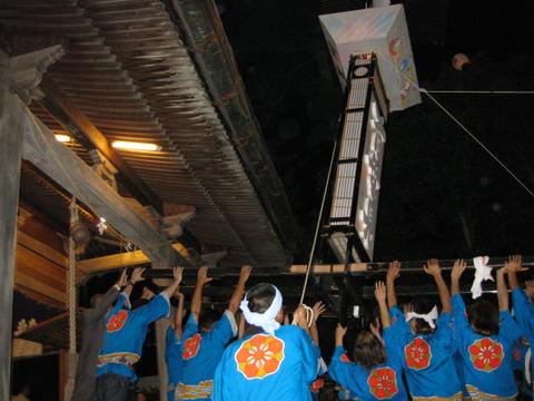 新宮納涼祭 神社前での差し上げ---1 | 新宮納涼祭 キリコと花火 |