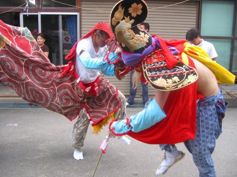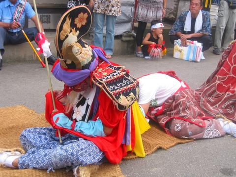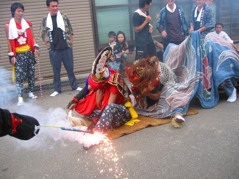 | 殺された獅子 | 可憐に舞う天狗と大獅子 | 夕方になると花火が焚かれます |