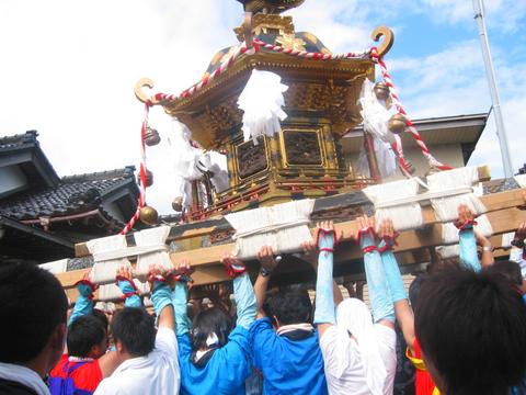 | 子浦出雲神社秋季例大祭2007・9・16 子浦出雲神社秋季例大祭は9月16日快晴 の秋空のもと行われた。久保町青年団と 荒屋新川青年団の獅子舞が御輿渡御に大 獅子、中獅子、小獅子が共奉した。 |