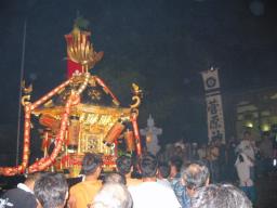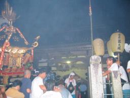 ナイアガラ花火の中をくぐり抜けた御輿 |