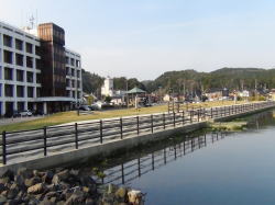 能登町役所前のおだやかな宇出津湾