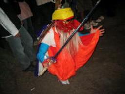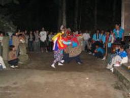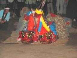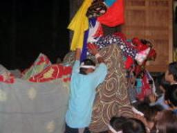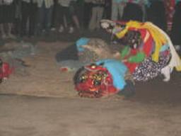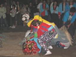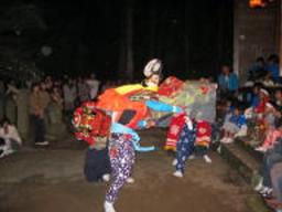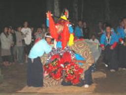 | 子供天狗は胴幕の人の肩車で神社 境内を一周 |