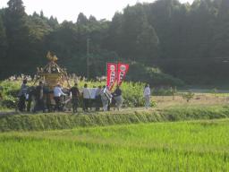 | 石川県七尾市池崎町の秋祭りは秋晴 れの中におこなわれた。のどかな田 園地帯で七尾市内にこんな所があっ たのかと思われところだ。 |