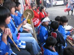 祭宿の真中に陣取り笛、太鼓、鉦で |
