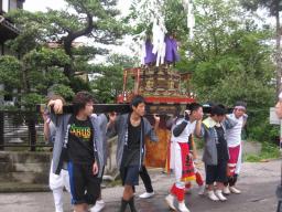 | 石川県羽咋市鹿島路町では大勢の 男女子供達が獅子舞をまわします。 |