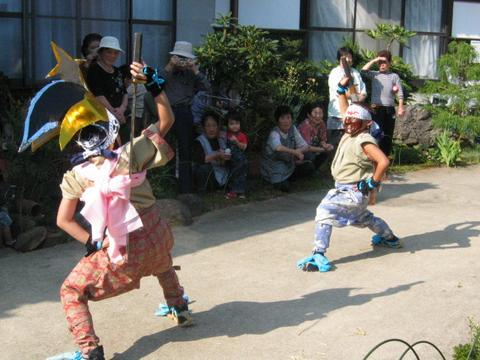 | 女装した少年が大人(男)と対決する--舞 | 巫女の格好をした少年 | 二人のベッサイが登場し子供達を泣かす |
