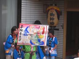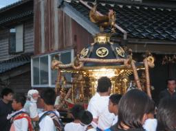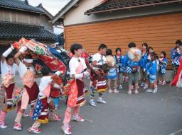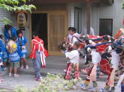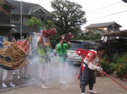 | 9月2日 大獅子二対と子獅子二対が 祭礼に出ていた。大獅子の方は囃子 がなくニラミだけで舞っていた。 |